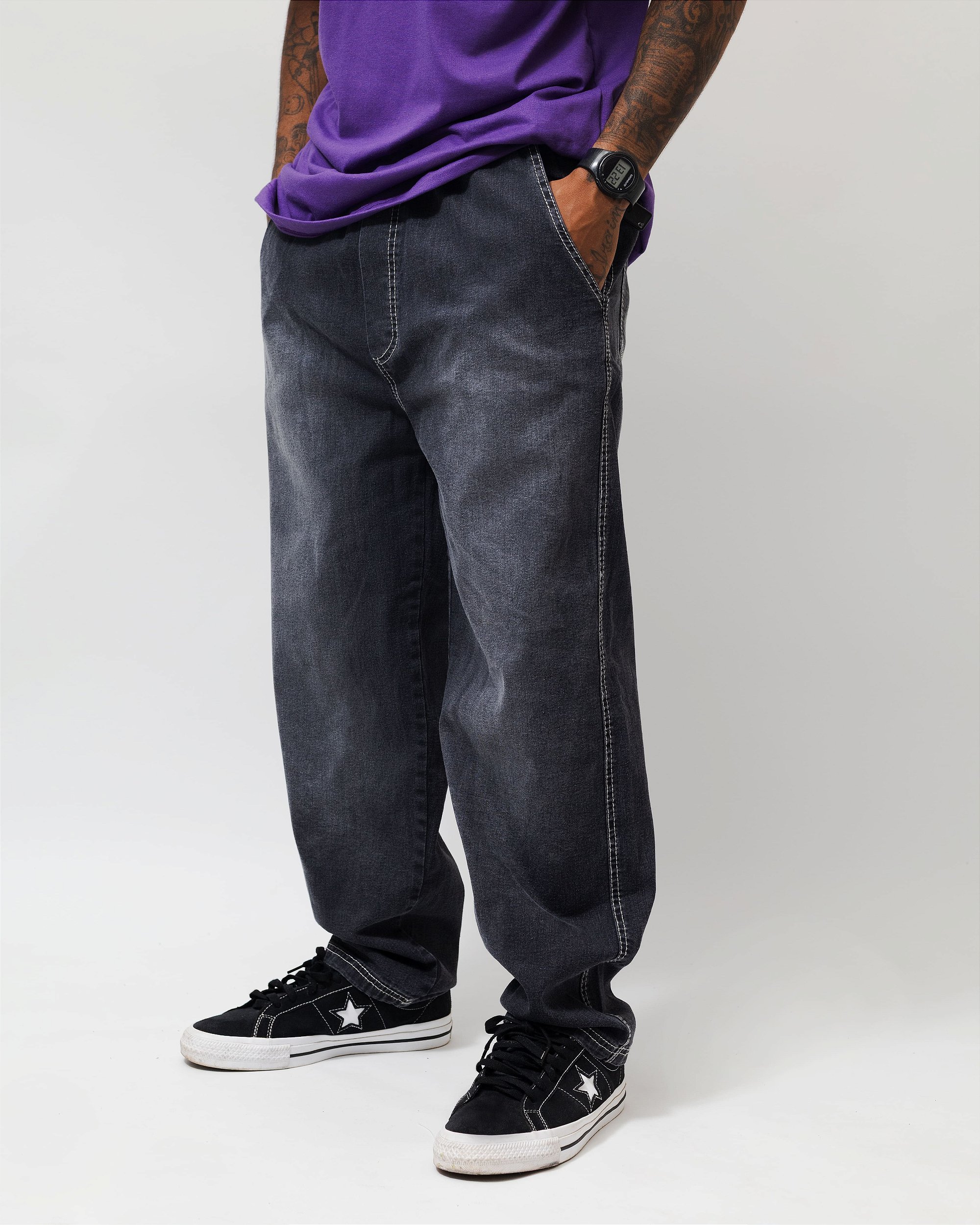 A calça balão que virou tendência nas ruas. Feita em jeans 100% algodão, com tecido resistente, caimento estruturado e visual oversized que entrega estilo com conforto de sobra. O corte balão traz aquela modelagem mais ampla na perna, com cintura mais ajustada, criando uma silhueta moderna e cheia de atitude.